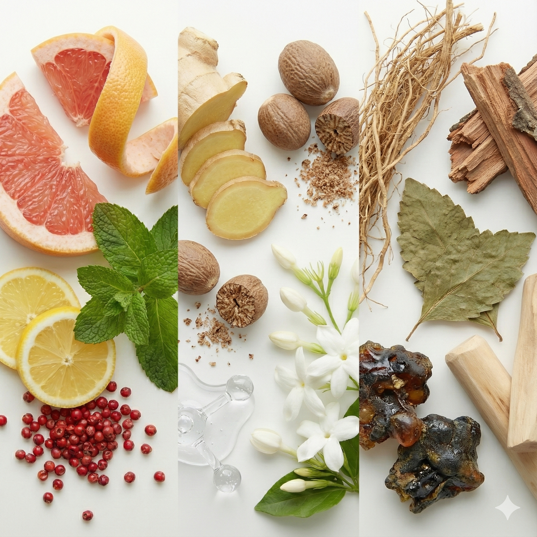 Notas de Topo: O frescor incisivo da Toranja, Limão, Hortelã e Pimenta Rosa.