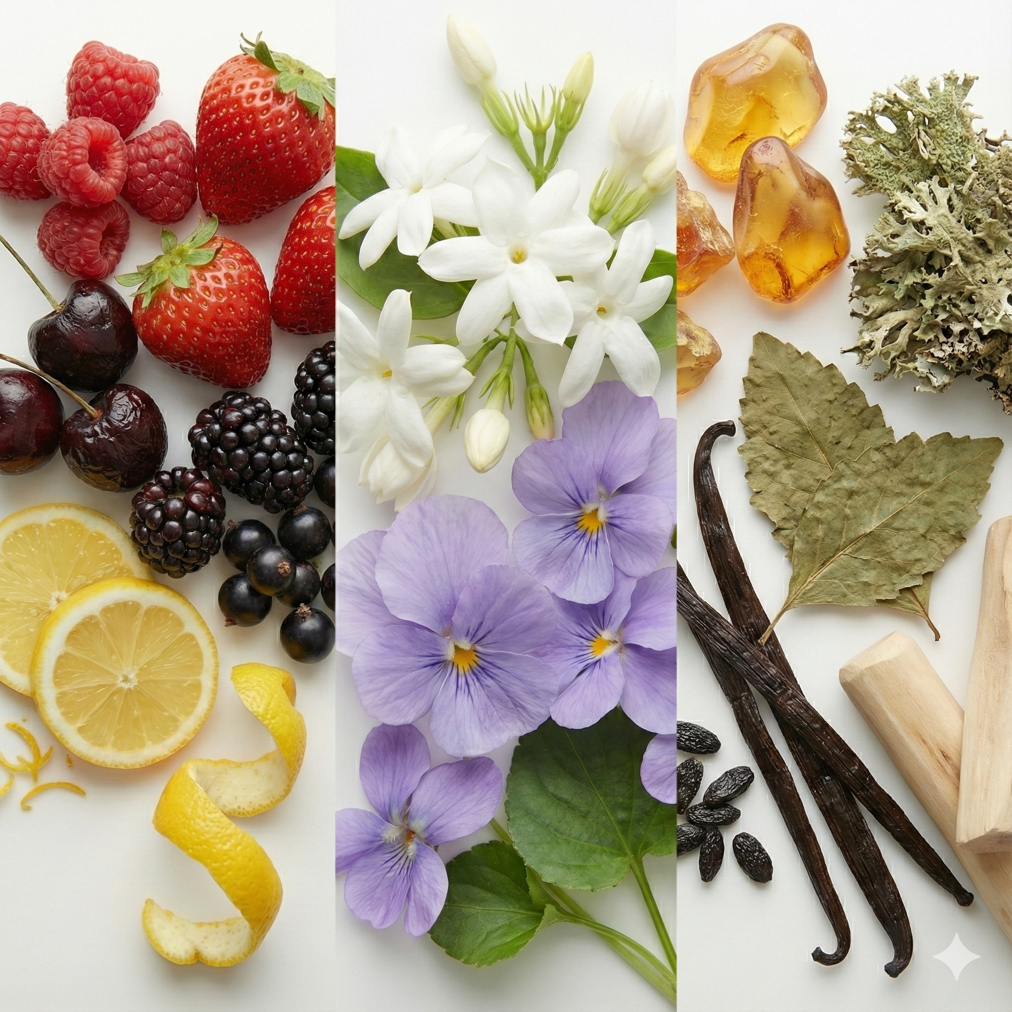 Notas de Topo: A explosão suculenta de Framboesa, Morango, Cereja Amarga, Amora, Cassis e Limão Siciliano.