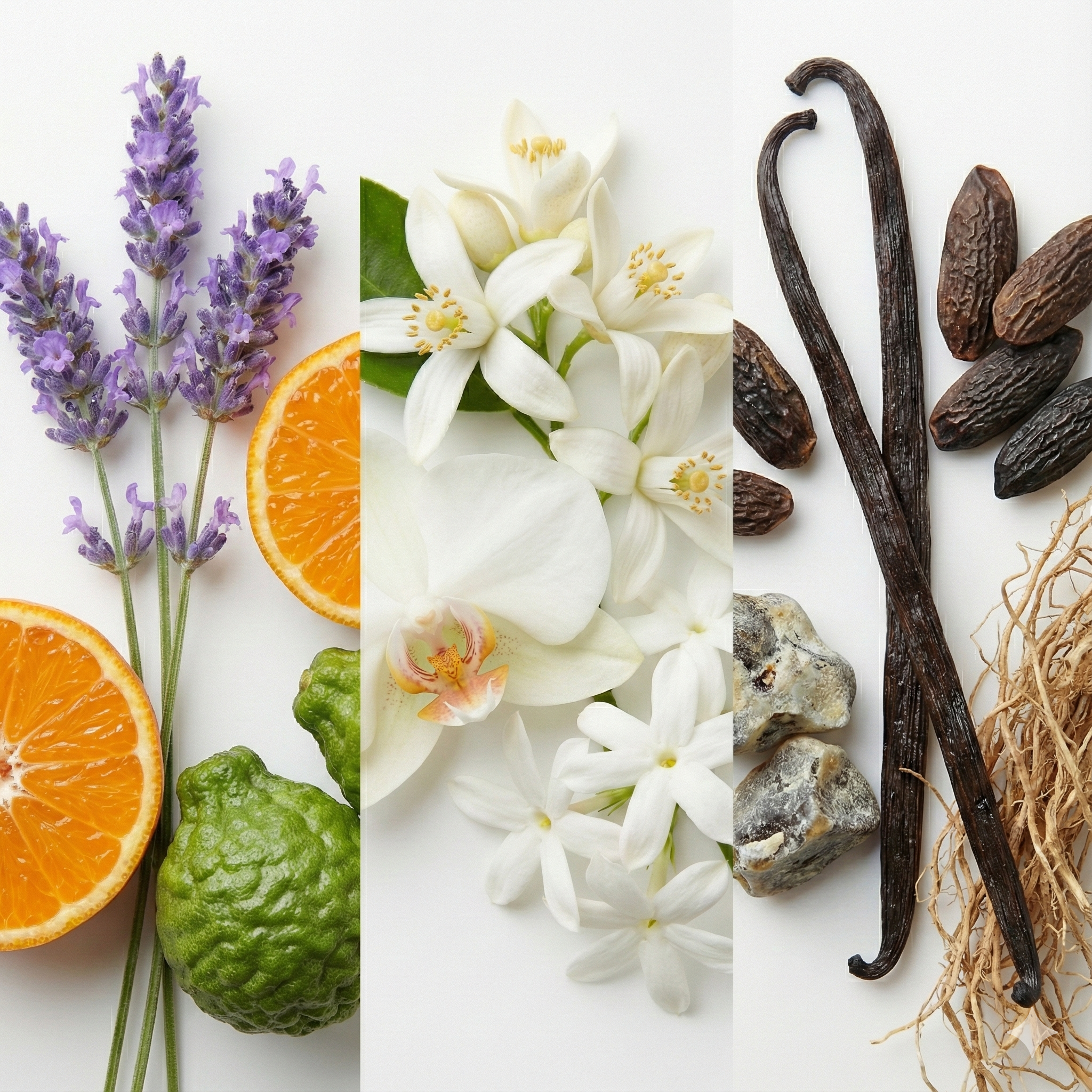 A abertura é vibrante e incisiva, combinando o frescor cítrico da tangerina e bergamota com a pureza aromática da lavanda. O coração intensifica essa dualidade: a lavanda retorna, agora envolvida pela sensualidade solar da flor de laranjeira tunisina, a opulência do jasmim árabe e o toque exótico da orquídea. O fundo traz uma assinatura de luxo e durabilidade, onde a baunilha de Madagascar e a fava tonka se fundem à estrutura elegante do vetiver e ao toque salgado do âmbar cinzento.