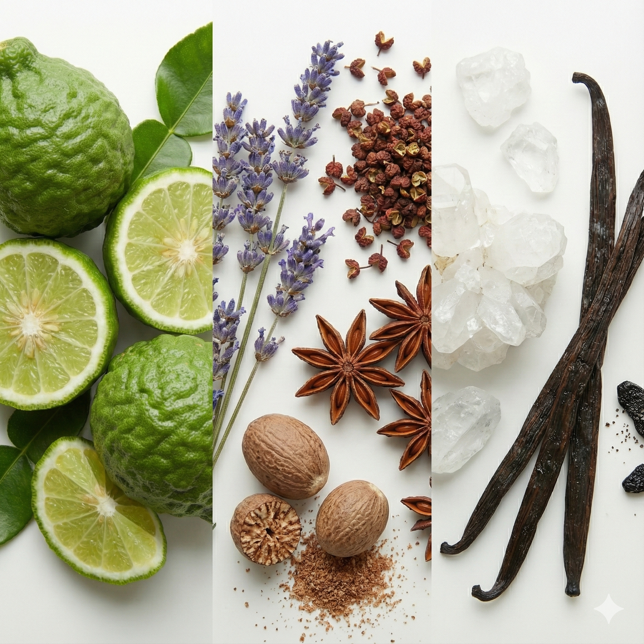 A abertura é marcada pelo frescor suculento e vibrante da bergamota, que saúda os sentidos. O coração revela uma complexidade aromática e especiada, onde a lavanda clássica ganha profundidade com a pimenta de Szechuan, o anis estrelado e a noz-moscada. O fundo é a assinatura de poder desta criação: o ambroxan traz um toque almiscarado e moderno, envolvido pela cremosidade defumada e sensual da baunilha.